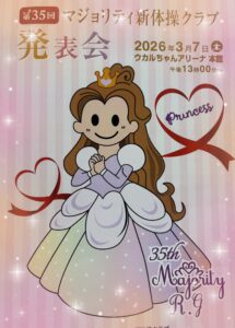 第35回マジョリティ新体操クラブ発表会のご案内 By 管理者2026年3月2日未分類 2026年3月7日㈯『第35回マジョリティ新体操クラブ発表会』を開催します。今回のテーマはprincess👑です。ウカルちゃんアリーナ(滋賀県立体育館)が閉館となるためウカルちゃんアリーナでの発表会が最後となります。マジョリティ卒業生、新体操に興味がある方是非、見に来てください。可愛いプリンセスたちが演技します!!